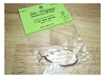 Though originally designed for serious racers, Dr. Oogan springs are the best choice for non competitive racing as well. Because they are precision made to high tolerances and use wire superior to that of the originals, they are the most popular replacement spring for all variations of the T-Jet and AFX chassis.